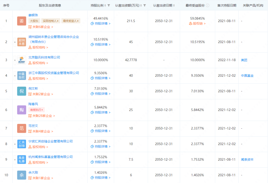 美團(tuán)這邊,近日,湖州超鈉新能源科技有限公司發(fā)生工商變更,股東新增北京酷訊科技有限公司,持股比例10%,認(rèn)繳出資額42.7778萬(wàn)。