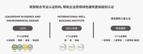 綠色建筑意味著更低的耗能和更高的生活品質(zhì)。在全球范圍內(nèi),綠色建筑認(rèn)證在推動綠色建筑發(fā)展方面起到了突出的作用,獲得了各國的認(rèn)可。筑掣科技聯(lián)合專業(yè)認(rèn)證機(jī)構(gòu)幫助企業(yè)獲得更高級別的綠色建筑認(rèn)證,具體包含美國LEED、國際WELL標(biāo)準(zhǔn)以及中國綠色建筑三星認(rèn)證。