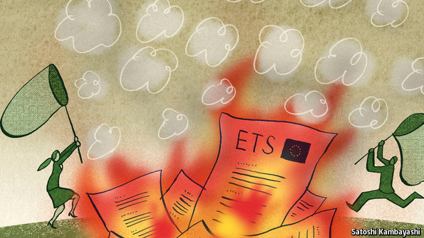 ETS已經(jīng)糟糕了很長(zhǎng)時(shí)間。它是一項(xiàng)許可碳排放的限額交易方案,其中規(guī)定2013—2020年間160億噸二氧化碳(約為歐盟此期間碳排放量的一半)被分配至企業(yè)并許可在企業(yè)間進(jìn)行交換。一部分原因是因?yàn)榻?jīng)濟(jì)衰退減少了行業(yè)對(duì)于減排許可證的需求,另部分原因是因?yàn)闅W盟在最初分發(fā)了過(guò)多碳配額導(dǎo)致碳市場(chǎng)嚴(yán)重供過(guò)于求。過(guò)剩的額度介于15億噸至20億噸(約為歐盟1年的減排量)。碳價(jià)已經(jīng)從2011年的20歐元(30美元)/噸下滑至2013年初的5歐元/噸。