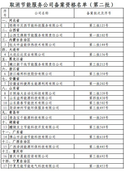 根據(jù)《財政部國家發(fā)展改革委關于印發(fā)<合同能源管理財政獎勵資金管理暫行辦法>的通知》(財建[2010]249號)有關規(guī)定,現(xiàn)將造假節(jié)能服務公司名單予以公告,取消其備案資格,并收回這些節(jié)能服務公司所有合同能源管理項目獎勵資金。