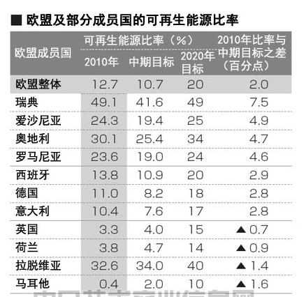 西班牙、德國及意大利等風力和太陽能發(fā)電裝機容量居歐洲前列的國家,也在2010年,達到了比中間目標值高近3個百分點的數值。