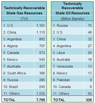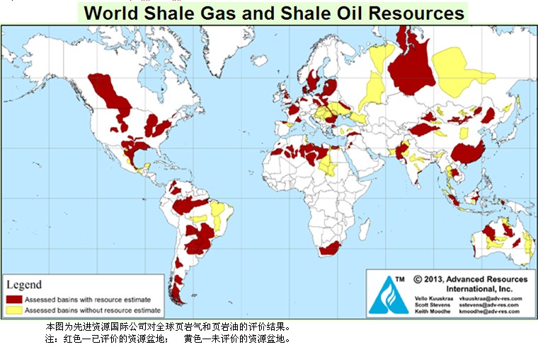 美國能源情報署2013年6月10日公布了“頁巖油和頁巖氣技術(shù)可采資源量:除美國以外41個國家137個頁巖層的評價(Technically Recoverable Shale Oil and Shale Gas Resources:An Assessment of 137 Shale Formationin 41 Countries Outside the UnitedStates)”。