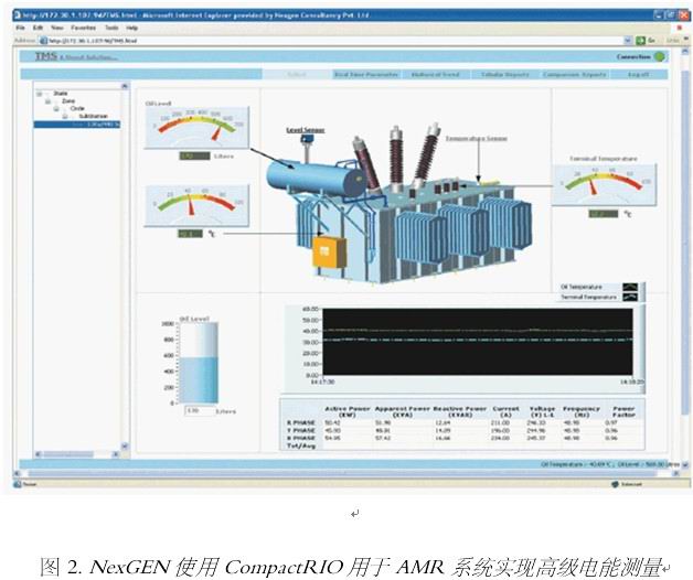 例如,配置I/O(RIO)技術(shù)正在被用來改善印度電網(wǎng)的效率。在印度,NexGen有限公司使用LabVIEW和CompactRIO來實(shí)現(xiàn)變電站的有先進(jìn)功率測量功能(AMR)的自動(dòng)化抄表。它也同時(shí)監(jiān)測11千伏輸電線路的輸入功率和440 伏特的輸出功率來描述變電站變壓器的效率。此外,該系統(tǒng)監(jiān)測變壓器的油位和溫度,并且通過蜂窩網(wǎng)絡(luò)和中央監(jiān)控以及數(shù)據(jù)采集系統(tǒng)來通信。NexGen公司正在部署這樣一個(gè)基于NI單板式RIO硬件的系統(tǒng)于2,820個(gè)貫穿于整個(gè)印度拉賈斯坦邦的子變電站。安裝分布式智能傳感器是充分體現(xiàn)電網(wǎng)的效率唯一的辦法。NexGen公司自動(dòng)化抄表系統(tǒng)將提高印度的電能配置并且?guī)椭鷾p少配電系統(tǒng)估計(jì)百分之三十的功率損耗。