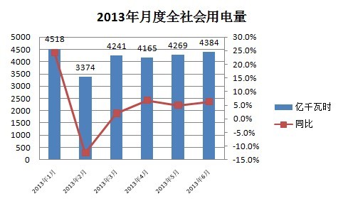 從單月情況來(lái)看,6月份全社會(huì)用電量同比增速環(huán)比5月增加。這表明我國(guó)經(jīng)濟(jì)發(fā)展勢(shì)頭并未出現(xiàn)大的波動(dòng),關(guān)于中國(guó)經(jīng)濟(jì)硬著陸的擔(dān)心至少?gòu)挠秒娏可蟻?lái)看似乎并無(wú)必要。