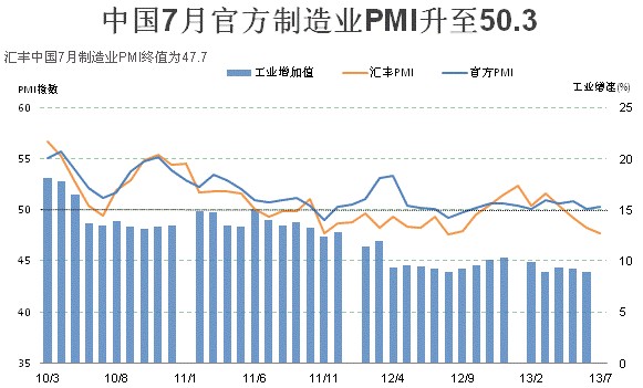 而且,稍早中國國家統(tǒng)計局和物流與采購聯(lián)合會(CFLP)聯(lián)合公布,中國宏觀經濟先行指標--7月官方制造業(yè)采購經理人指數(PMI)小幅反彈至50.3,高于路透調查中值的49.9,上月為50.1。