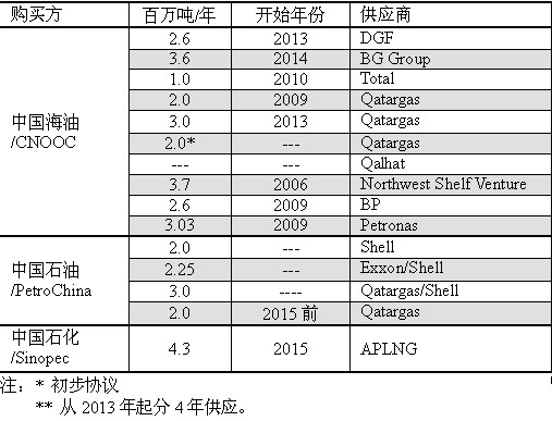 中國(guó)簽署的LNG進(jìn)口協(xié)議