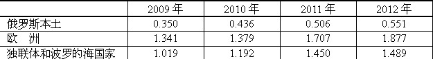 俄羅斯天然氣出口價(jià)格因各地區(qū)消費(fèi)者不同而有區(qū)別。表中數(shù)據(jù)為平均銷售價(jià)格,扣除增值稅、消費(fèi)稅和關(guān)稅。顯然,出口供應(yīng)天然氣價(jià)格高得多。