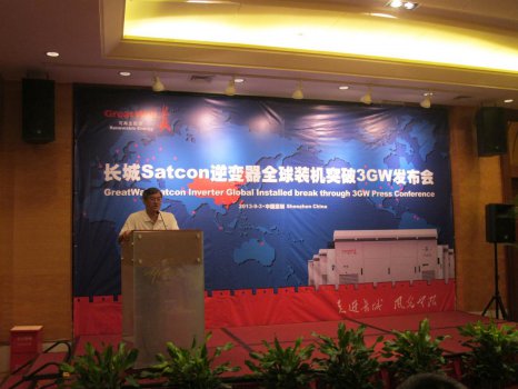 長(zhǎng)城能源副總裁余養(yǎng)清宣布“長(zhǎng)城Satcon逆變器全球裝機(jī)量突破3GW”