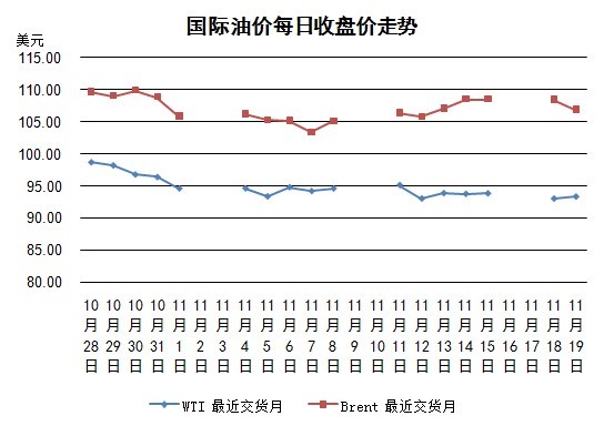 當(dāng)日紐約WTI油價(jià)微漲。道達(dá)爾在比利時(shí)安特衛(wèi)普的煉油廠發(fā)生火災(zāi),該煉油廠為歐洲第二大煉油廠,該消息推升油價(jià)上行。11月20日新一輪伊朗核問(wèn)題談判將開始,另外美國(guó)石油庫(kù)存周報(bào)即將公布,因此市場(chǎng)觀望情緒濃厚,交易量有限。根據(jù)路透社調(diào)查預(yù)測(cè),截至15日的美國(guó)原油庫(kù)存比前一周增加90萬(wàn)桶,汽油庫(kù)存減少30萬(wàn)桶,餾分油減少60萬(wàn)桶。