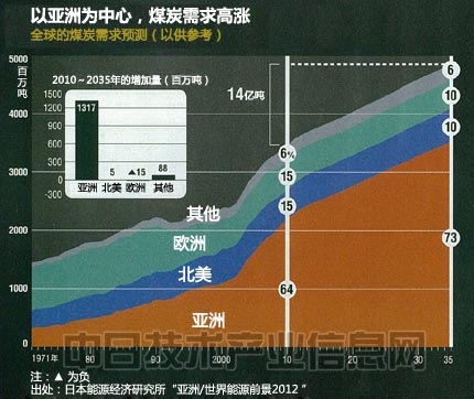 有意見認為,如果按照目前的趨勢來預測未來,煤炭可以滿足中國及印度等亞洲地區(qū)不斷增加的能源需求(圖表)。