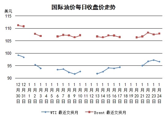 阿根廷、土耳其、南非等新興國家貨幣匯率下跌,使得人們對新興國經(jīng)濟的未來前景產(chǎn)生擔(dān)憂,出現(xiàn)拋售風(fēng)險資產(chǎn)的動向。美歐日股市紛紛下跌,世界能源消費走弱的可能性增加,這都利空油價。另外,市場擔(dān)憂美聯(lián)儲會繼續(xù)加強收緊量化寬松。不過當(dāng)日布倫特油價小幅反彈。