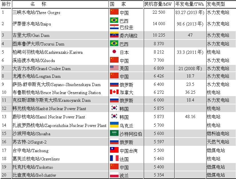 世界上前20大發(fā)電站