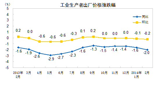 2014年2月份工業(yè)生產(chǎn)者價(jià)格主要數(shù)據(jù)