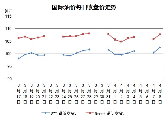 8日國際油價(jià)大漲,WTI5月期貨價(jià)格約為一個(gè)月以來最高值。烏克蘭東部頓涅茨克州、哈爾科夫州和盧甘斯克州數(shù)千名親俄民眾6日舉行抗議集會(huì),頓涅茨克和哈爾科夫的一些集會(huì)者占領(lǐng)了州政府大樓,升起俄羅斯國旗,宣稱“獨(dú)立”成立“共和國”。俄羅斯外長(zhǎng)拉夫羅夫7日警告烏克蘭當(dāng)局不要在烏東部和南部地區(qū)對(duì)親俄示威者使用武力。拉夫羅夫表示,在烏克蘭東部地區(qū)動(dòng)用武力可能會(huì)引發(fā)“內(nèi)戰(zhàn)”。西方擔(dān)心俄羅斯可能會(huì)對(duì)烏克蘭進(jìn)行新的武力干涉。