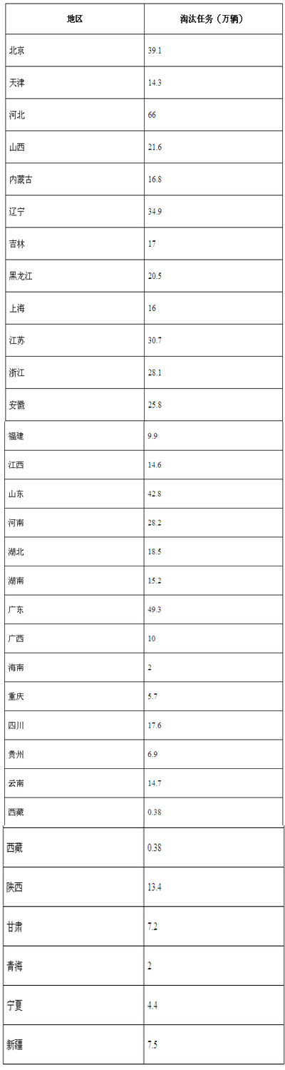 2014年各地區(qū)黃標(biāo)車及老舊車輛淘汰任務(wù)