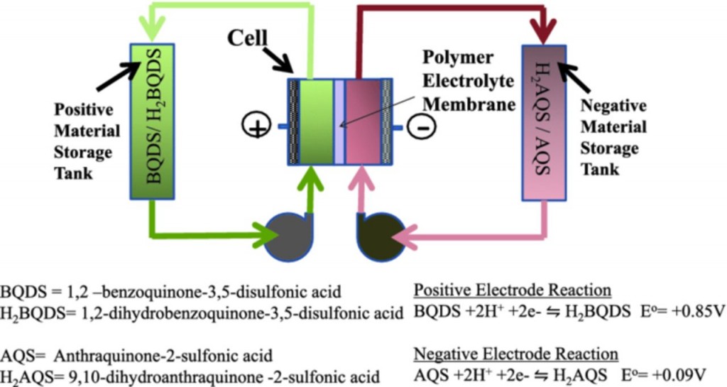 該科研小組的技術(shù)創(chuàng)新主要是電活性物質(zhì)。以前的電池設(shè)計都使用金屬或者有毒化學(xué)物質(zhì)。為此,Narayan教授和Prakash教授想研發(fā)一種可以溶于水的有機(jī)化合物,對環(huán)境無污染,成本低。通過把分子設(shè)計和試錯法結(jié)合,科研人員找到一種天然醌,一種被氧化的有機(jī)化合物。醌普遍存在于植物、菌類、細(xì)菌和部分動物體內(nèi),參與植物的光合作用和細(xì)胞呼吸作用。Narayan教授說道:“這些都是自然界能量轉(zhuǎn)換的方式。目前,電池需要的醌取自天然的碳?xì)浠衔铩?,很可能會從二氧化碳中提取?rdquo;