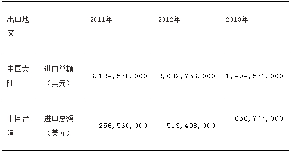 圖表1:2011年-2013年美國組件進口情況