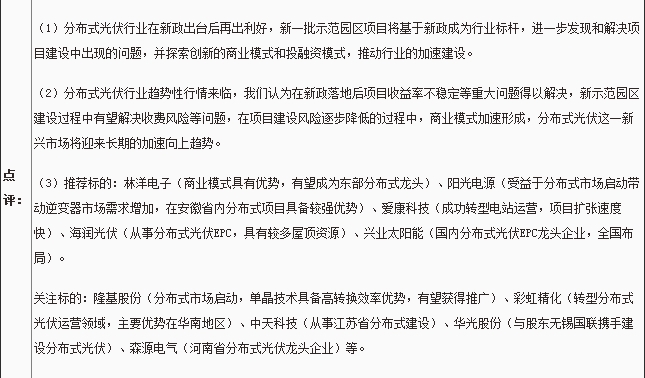 二、行業(yè)新聞:分布式光伏示范區(qū)再出政策,行業(yè)趨勢性行情來臨