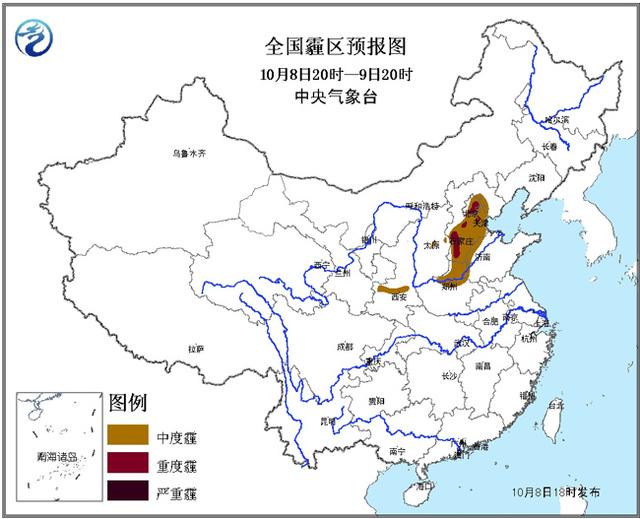 中央氣象臺(tái)10月9日06時(shí)繼續(xù)發(fā)布霾黃色預(yù)警:預(yù)計(jì)9日08時(shí)至10日08時(shí),北京大部、天津、河北中南部、山東西部、河南中北部、山西南部及陜西關(guān)中等地的部分地區(qū)有中度霾,其中北京中東部、河北西部沿山局地有重度霾。另外,9日上午,華北中南部、河南西北部、陜西北部和關(guān)中等地的部分地區(qū)有能見(jiàn)度不足1公里的大霧。