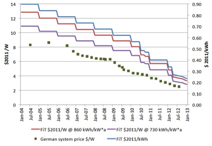 FIT過程中的確定性,無論是在長期的固定價格合約條款抑或提前知道價格,都是促使德國的顯著節(jié)能改造的主要因素。德國有遠見的政策已經(jīng)成功地使太陽能成本大幅下降,到這種納稅人可以真正省錢的新合約的程度——那么為什么要撤銷這個現(xiàn)在已經(jīng)實現(xiàn)了重要里程碑的政策?