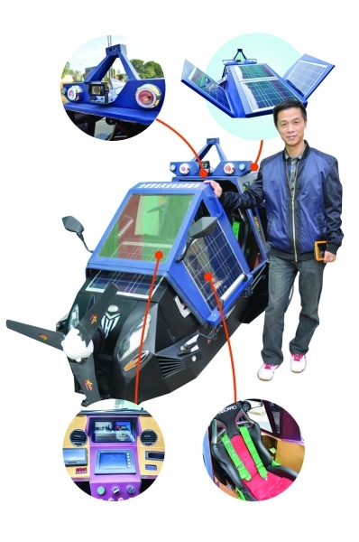 “神車”是用純鋁合金打造,采用的是風(fēng)力和太陽(yáng)能發(fā)電。車內(nèi)艙全部是仿造飛機(jī)內(nèi)部構(gòu)造。