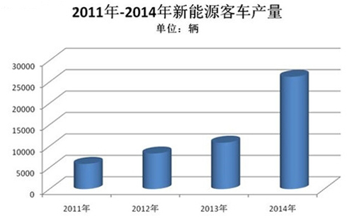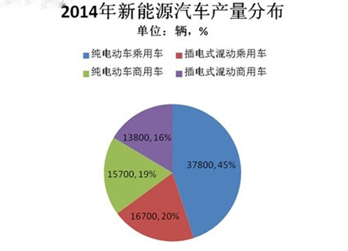 2014年,有新能源汽車元年之說,總體產銷都較往年有大幅增長。最終在新能源汽車市場上,純電動商用車成為增速最快車型。2014年全年純電動商用車生產1.57萬輛,占總體產量的19%。