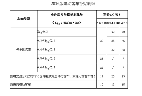 下一輪純電動客車將按照單位載質量能量消耗量(Ekg)補貼,如:同樣是車長(L)≥10,Ekg<0.3的車型可獲得50萬元的補貼,而0.4≤Ekg<0.5的車型則獲得42萬元的補貼,這意味著純電動客車單位載質量能量消耗量越低,補貼越高。