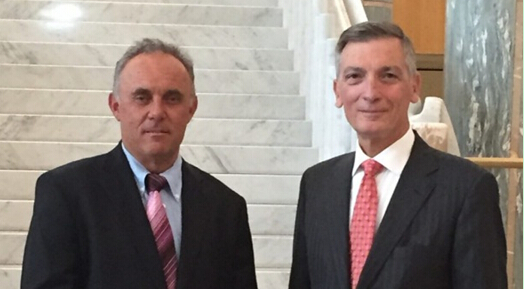 澳大利亞液態(tài)金屬蓄電池研究公司首席執(zhí)行官戈登•海恩茲(GordonHinds)和美國的聯(lián)合發(fā)明者唐納德•薩杜威(GordonHinds)教授