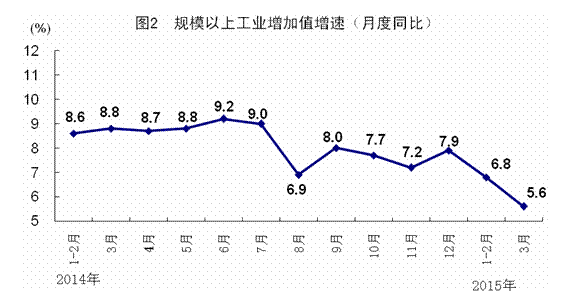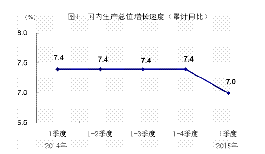 2014年各季度及2015年一季度GDP環(huán)比增速分別為1.6%、2.0%、1.9%、1.5%和1.3%。