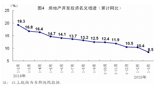 一季度,全國房地產(chǎn)開發(fā)投資16651億元,同比名義增長8.5%(扣除價格因素實際增長9.5%),其中住宅投資增長5.9%。房屋新開工面積23724萬平方米,同比下降18.4%,其中住宅新開工面積下降20.9%。全國商品房銷售面積18254萬平方米,同比下降9.2%,其中住宅銷售面積下降9.8%。全國商品房銷售額12023億元,同比下降9.3%,其中住宅銷售額下降9.1%。房地產(chǎn)開發(fā)企業(yè)土地購置面積4051萬平方米,同比下降32.4%。3月末,全國商品房待售面積64998萬平方米,同比增長24.6%。一季度,房地產(chǎn)開發(fā)企業(yè)到位資金27892億元,同比下降2.9%。