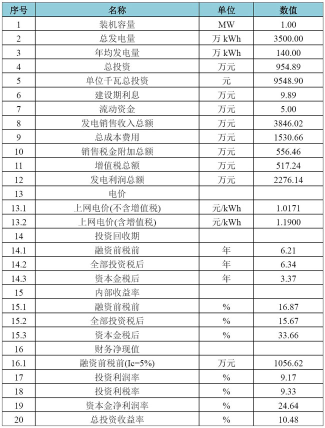 表1:Ⅱ類資源區(qū)地面光伏電站財(cái)務(wù)指標(biāo)表