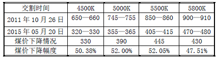 據秦皇島煤炭市場發(fā)布的信息顯示,2015年5月20日,秦皇島海運煤炭交易市場發(fā)布的環(huán)渤海動力煤價格指數(環(huán)渤海地區(qū)發(fā)熱量5500大卡動力煤的綜合平均價格)報收于414元/噸,報告期(2015年5月13日至5月19日)比前一報告期下降了2元/噸。而四年前報告周期(2011年10月26日至11月1日),環(huán)渤海地區(qū)港口平倉的發(fā)熱量5500大卡市場動力煤的綜合平均價格報收853元/噸,與前一報告周期持平,煤價處于相對穩(wěn)定狀態(tài)。從整體情況來看,按照煤炭價格指數測算,秦皇島平倉的發(fā)熱量5500大卡的市場動力煤綜合平均價格下滑439元/噸,從數字上來看煤炭價格下滑了51.47%,可謂是煤炭價格攔腰斬斷;實際上要超過這個下滑幅度。