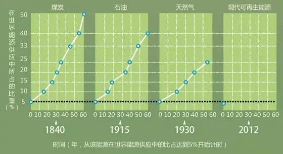 “可再生能源將以不可阻擋之勢(shì)席卷全球,”1976年,著名的新能源倡議者艾默里·洛文斯(Amory Lovins)曾這樣斷言。然而,1990~2012年,化石燃料在全球能源消耗中的占比幾乎沒(méi)有變化,僅從88%降到了87%。2011年,美國(guó)可再生能源在能源供應(yīng)中占比不到10%,而且大部分來(lái)自“傳統(tǒng)”的可再生能源,如水力發(fā)電、燃燒伐木過(guò)程產(chǎn)生的木材廢料。