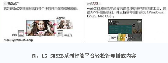 LGSM5KB擁有從32英寸到65英寸五個(gè)尺寸的細(xì)分,以滿足用戶多樣化需求。不僅外觀輕薄時(shí)尚,內(nèi)容管理上擁有webOS智能平臺(tái)更輕松、內(nèi)置Wi-Fi功能改善信息發(fā)布,還有OPS套件功能帶來靈活的媒體播放解決方案等一系列功能,大力改進(jìn)普通商顯設(shè)備的功能和操作的不足,為各行各業(yè)用戶帶來最智能、最便捷的解決方案。
