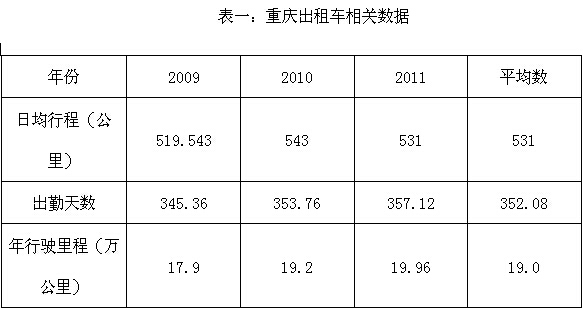 為了支持上述結(jié)論,不妨看看西安和重慶兩市的相關(guān)數(shù)據(jù)。據(jù)西安出租車管理辦公室公布,西安出租車的保有量為12106輛,每天需用天然氣48萬(wàn)立方米,日均行程為459公里。按出租車出勤天數(shù)為350天計(jì),可推算出其百車公里平均氣耗為8.63立方米。每年每車用氣1.387萬(wàn)立方米,全市出租車全年氣耗為1.679億立方米。重慶市出租車的日均行駛和年行駛里程及出勤天數(shù)見(jiàn)下表:
