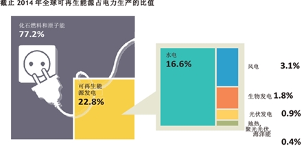 2014年全球再生能源發(fā)電占電力生產(chǎn)的比值