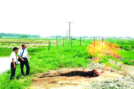 經(jīng)專家初步檢測,不明氣體為淺層天然氣(俗稱沼氣),遇明火可燃。由于無毒無害,對周圍居民沒有威脅,將采取自燃燒盡方式。目前,燃燒點50米外已設(shè)防護欄圍擋,并設(shè)置禁止通行標志,請附近居民勿隨意靠近。