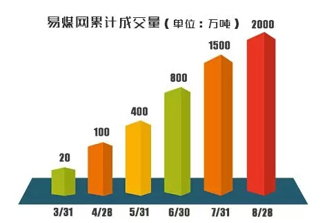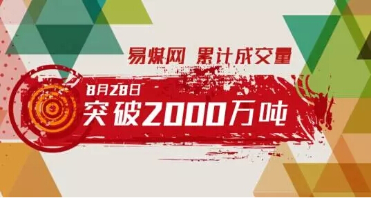 截止2015年8月31日,易煤網(wǎng)煤炭線上交易累計成交量已突破2000萬噸,累計成交額逾71億元。