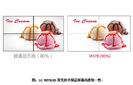 LGVH7B具有更高的亮度均勻性。顯示器亮度為700nits同時采用業(yè)內(nèi)以專業(yè)著稱的IPS硬屏技術(shù)以及LED背光技術(shù),有效避免了其他顯示器出現(xiàn)的屏幕局部較暗的現(xiàn)象。LED背光技術(shù)保證了拼接屏屏幕亮度的高度統(tǒng)一,有效消除了任意視角時的顏色變化和失真情況,即便是在大型場所大規(guī)模安裝也能夠保證用戶在任意角度觀看都能獲得清晰的畫面,保持整塊拼接墻持續(xù)的亮度的統(tǒng)一性,為用戶帶來完美的顯示解決方案。