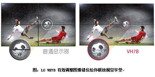 LGVH7B具體圖像錯位調(diào)整的功能。為提升用戶的觀看體驗,LGVH7B拼接屏顯示器提供了圖像改進算法以調(diào)整位于邊框邊界的圖像,使畫面表現(xiàn)更加流暢,成像更加完整,從而提供給用戶無縫的視覺效果。
