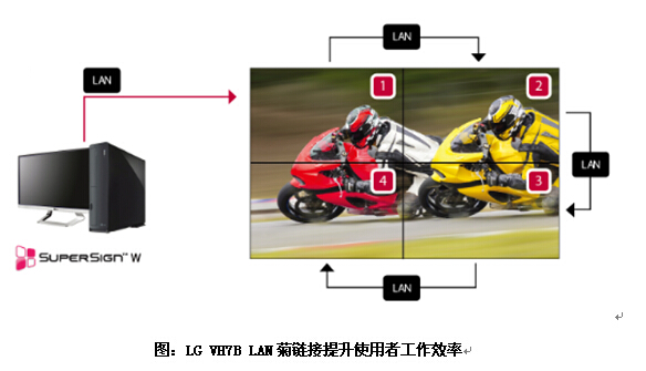 LGVH7B擁有高級的內(nèi)容管理功能,用戶所發(fā)出的控制命令可以通過LAN菊花鏈構(gòu)成菊花鏈網(wǎng)絡(luò)從而進行內(nèi)容發(fā)布,以執(zhí)行控制、監(jiān)控以及固件升級等命令,大幅提升使用者的工作效率。