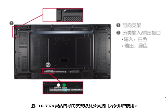 為方便用戶使用,LGVH7B配置了靈活的導向支架以及分類接口,通過導向支架用戶可以控制拼接墻的平整度,保證用戶觀看時的視覺舒適度。分類的輸入和輸出接口有效防止了菊鏈發(fā)生接入錯誤,保證內(nèi)容輸入輸出的正確性。