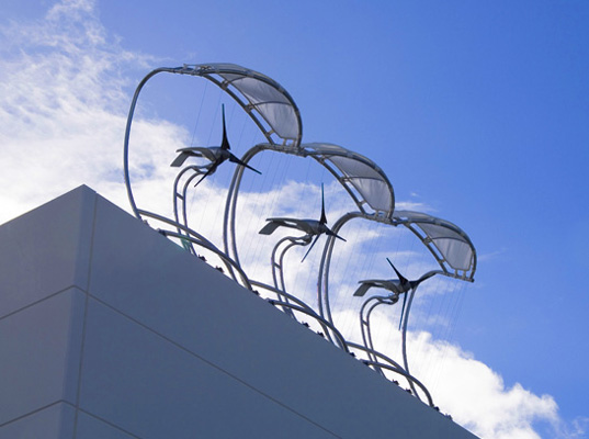 Architectural Wind風(fēng)力發(fā)電機(jī)是適用于城市和郊區(qū)建筑的小型模塊化風(fēng)力發(fā)電機(jī)系統(tǒng)。它的安裝不需要支持塔,因此噪音和振動(dòng)更小,安裝時(shí)間短,更適合城市和郊區(qū)環(huán)境。值得注意的是,這款風(fēng)力發(fā)電機(jī)的設(shè)計(jì)還獲得了極高的榮譽(yù),先后獲得紅點(diǎn)國際設(shè)計(jì)大獎(jiǎng)和2007年年度設(shè)計(jì)評(píng)委會(huì)大獎(jiǎng)。