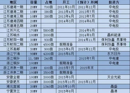 近年來漁光一體項目不完全統(tǒng)計(含建成及規(guī)劃中)