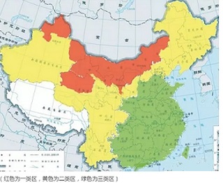 (紅色為一類區(qū),黃色為二類區(qū),綠色為三類區(qū))