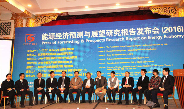 2016年1月6日,北京理工大學(xué)能源與環(huán)境政策研究中心在北京舉行2016年度“能源經(jīng)濟(jì)預(yù)測(cè)與展望研究報(bào)告發(fā)布會(huì)”,對(duì)外發(fā)布《‘十三五’及2030年能源經(jīng)濟(jì)展望》、《能源需求預(yù)測(cè)誤差歷史回顧與啟示》、《2016年國(guó)際原油價(jià)格分析與趨勢(shì)預(yù)測(cè)》、《2016年石油產(chǎn)業(yè)前景預(yù)測(cè)與展望》、《海外油氣資源國(guó)投資風(fēng)險(xiǎn)評(píng)價(jià)指數(shù)》、《‘十三五’北京市新能源汽車(chē)節(jié)能減排潛力分析》、《‘十三五’全國(guó)碳交易對(duì)工業(yè)部門(mén)減排成本的影響展望》七份研究報(bào)告。該系列報(bào)告是由長(zhǎng)江學(xué)者、國(guó)家杰出青年科學(xué)基金獲得者魏一鳴教授領(lǐng)導(dǎo)的研究團(tuán)隊(duì)在長(zhǎng)期深入研究基礎(chǔ)上形成的,每年初對(duì)外發(fā)布一次。
