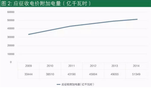 本文估算了2009-2014年電價(jià)附加的征收總額,并以2010年為比較年份,將估算出的電價(jià)附加額與發(fā)改委公布的同期可再生能源發(fā)電補(bǔ)貼進(jìn)行對(duì)照,我們發(fā)現(xiàn)截至2014年,可再生能源發(fā)電的補(bǔ)貼需求與電價(jià)附加征收之間沒(méi)有缺口,征收的電價(jià)附加基本可以滿足補(bǔ)貼需求。