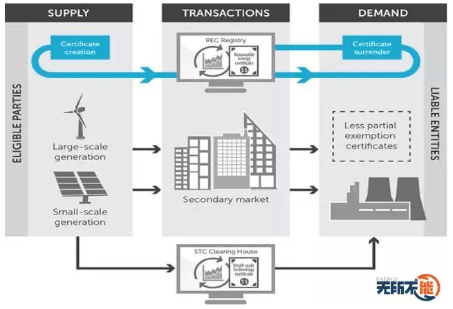 澳大利亞是世界上最早在全國范圍內(nèi)實行可再生能源配額制的國家。2000年,澳大利亞政府通過《可再生能源法案》,發(fā)布強制性可再生能源目標(biāo),對相關(guān)電力批發(fā)商規(guī)定了購買一定比例可再生能源電力的法定義務(wù)。2001年4月1日,澳大利亞可再生能源證書系統(tǒng)在全國范圍內(nèi)正式運行。從2011年1月1日開始,澳大利亞將可再生能源證書分為大規(guī)模證書(LGCs)和小規(guī)模證書(SGCs)兩種類型,其中大規(guī)模RECs主要面向發(fā)電站,小規(guī)模RECs主要面向太陽能熱水器、空氣源熱躉熱水器和小型發(fā)電機組。