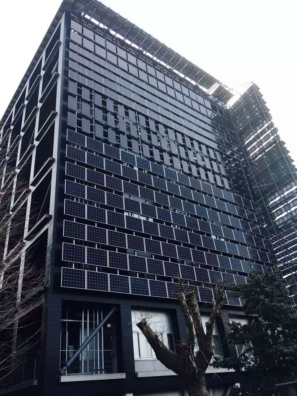 從應用端來說,在日本,你可以很容易就看到單晶光伏電池板出現(xiàn)在各個場合,建筑屋頂、溫室大棚、水面光伏……在政府支持下,日本的分布式光伏這兩年得到極大的發(fā)展,單晶電池板的集約、美觀、發(fā)電更多等優(yōu)勢在此意義重大,因而發(fā)展迅猛。事實上,日本使用單晶產品的地方真的很多。下圖是東京工業(yè)大學混合式光伏建筑,該項目是建于東京工業(yè)大學大岡山校區(qū)的一座研究設施,地下兩層、地上7層。設計中采用了650kW的太陽能發(fā)電及100kW的燃料電池以達到電力自給自足的目的。整座建筑物除了北側以外,其它幾面的外墻都覆蓋了太陽能發(fā)電板,電池板也選擇了單晶電池板,以爭取獲得最大發(fā)電量。抬眼看,一排排整齊的單晶電池板非常引人注目!