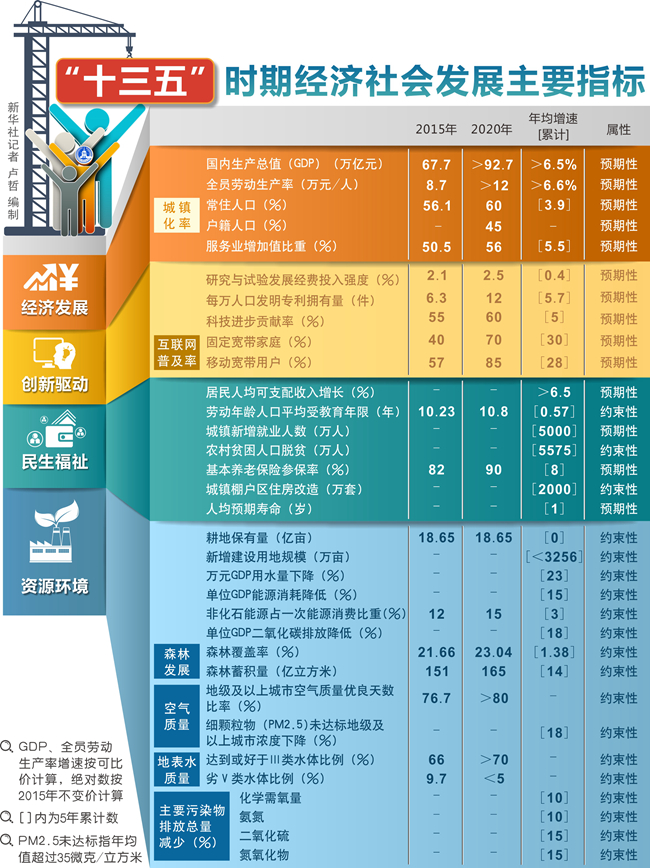 今后五年,中國經(jīng)濟發(fā)展的潛力在哪里?“十三五”規(guī)劃綱要草案中公布的六個指標,折射出中國發(fā)展的空間與前景。
